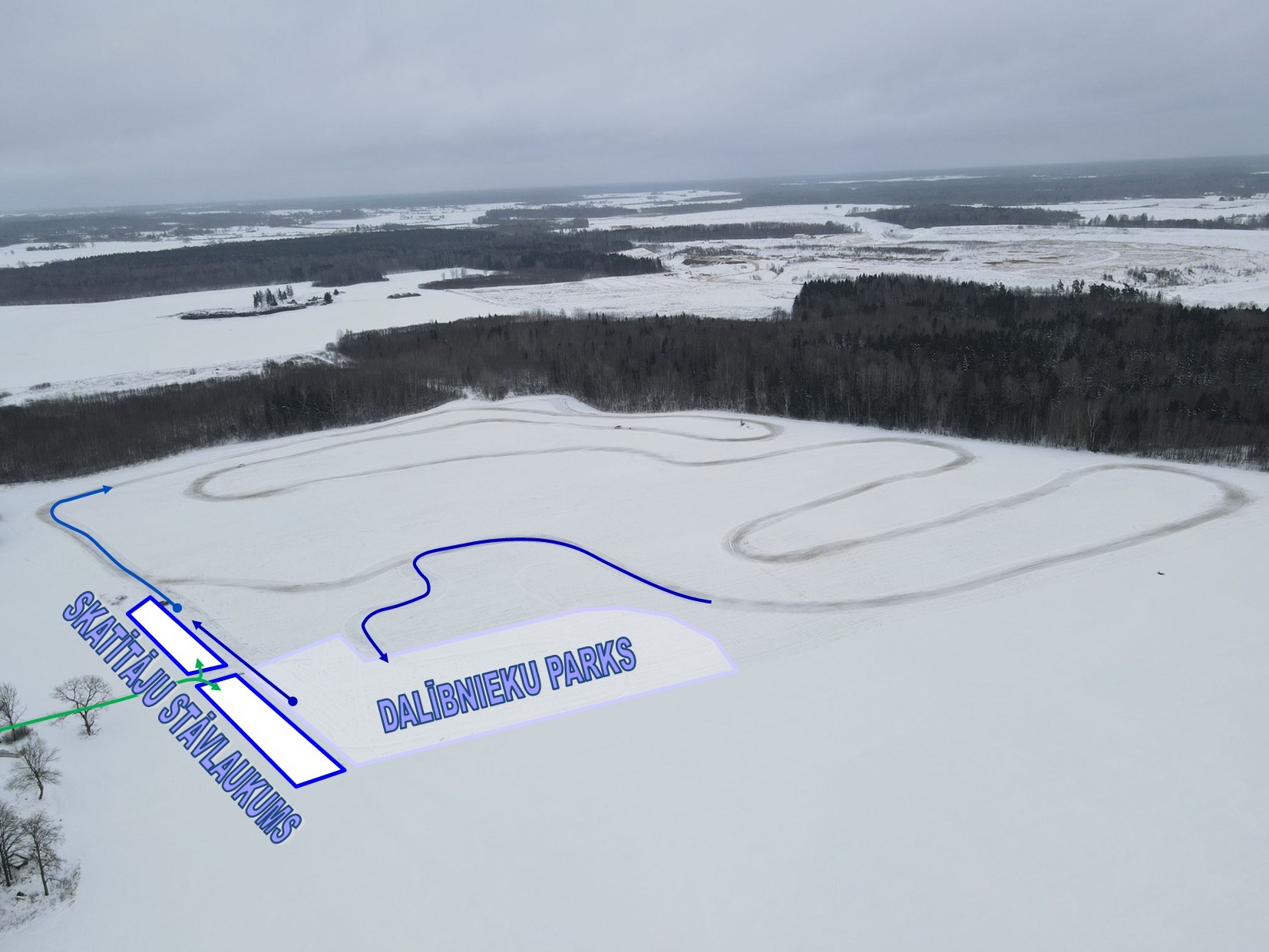Trases atrašānās vieta - Saldus novads, Novadnieku pagasts, Dukas. Google Maps lokācija ŠEIT. Iebraukšana trasē ŠEIT. Trases shēma ŠEIT. Ātruma ierobežojumi ierodoties trasē ŠEIT. Skatītāju stāvvietas ŠEIT.